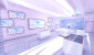 We wnętrzu dominuje złożony z 12 monitorów bezszwowych ekran służący m.in. do pokazów  zdalnie sterowanych prezentacji o firmie. Takie rozwiązanie umożliwia pełną kontrolę nad tym, co i kiedy jest prezentowane. Wrażenie multimedialności oraz przenikania się wirtualnego z realnym multiplikuje rzutowany na podłogę i ściany pomieszczenia video-mapping.